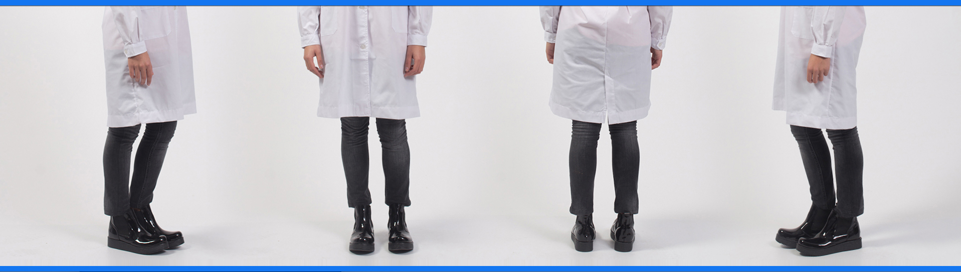 Costura: Con atraque en terminaciones, pespuntes de 0,5 cm. del borde, mínimo 3,7 puntadas por centímetro.